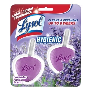 LYSOL Brand Hygienic Automatic Toilet Bowl Cleaner, Lavender, 2/Pack ... Leaves a pleasant scent for the entire bathroom. Antimicrobial protection in the hook to resist odor-causing bacteria. Angled neck for better reach under rim. More details. Other Product Options. LYSOL Brand Hygienic Automatic Toilet Bowl Cleaner, Lavender, 2/Pack. 1.41 oz Size - Solid - Lavender Scent - 2/ Pack. $4.94.